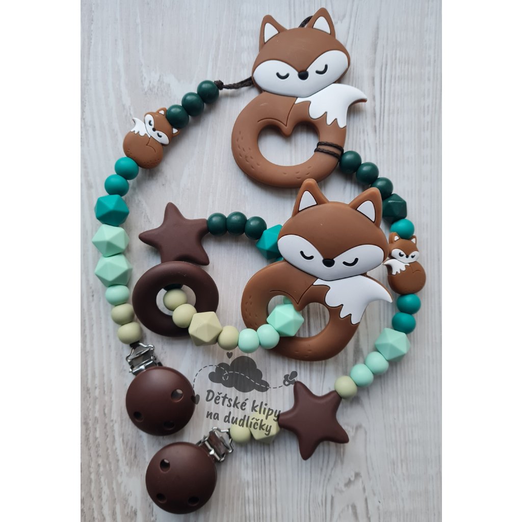 Sada obsahuje klip na dudlík, kulaté kousátko i závěsné koustáko.