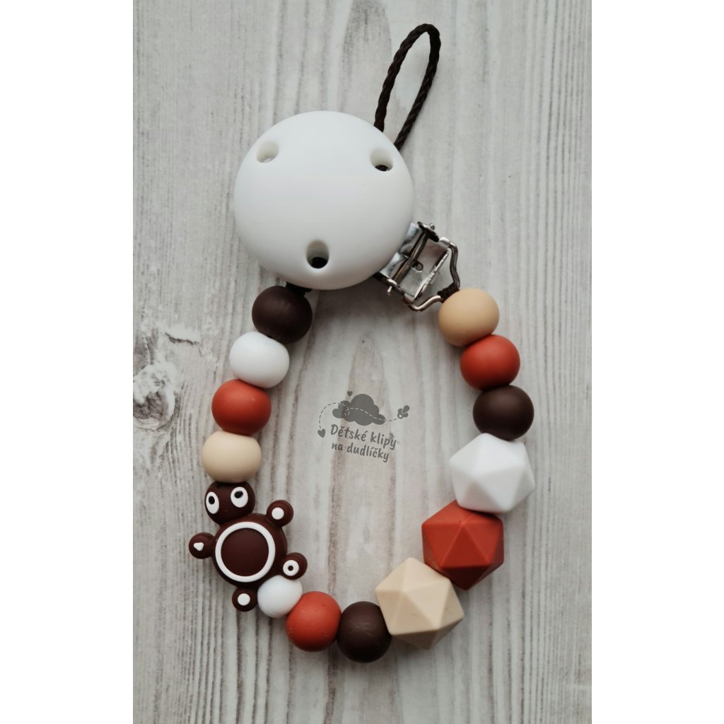 Klip na dudlík hnědá želvička s bílou, béžovou a cihlovou