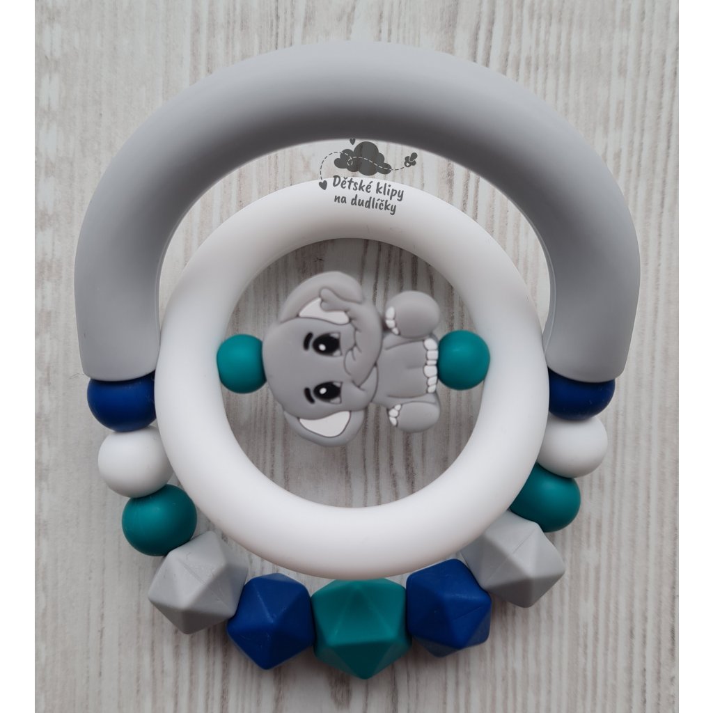 Twistík kousátko šedý sloník v kombinaci tmavě modré a petrolejové