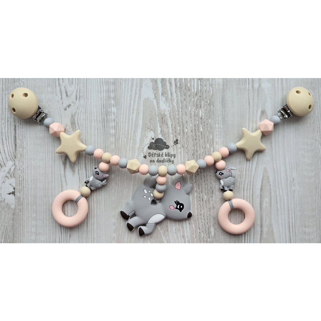 Závěs na kočárek šedá srnečka v kombinaci béžové a broskvové