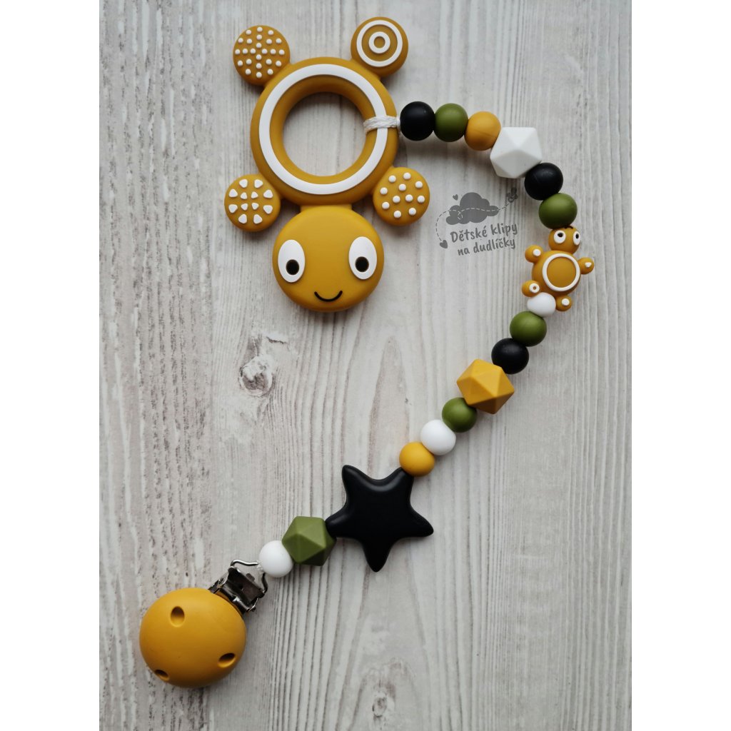 Závěsné kousátko hořčicová želvička s bílou, černou a khaki